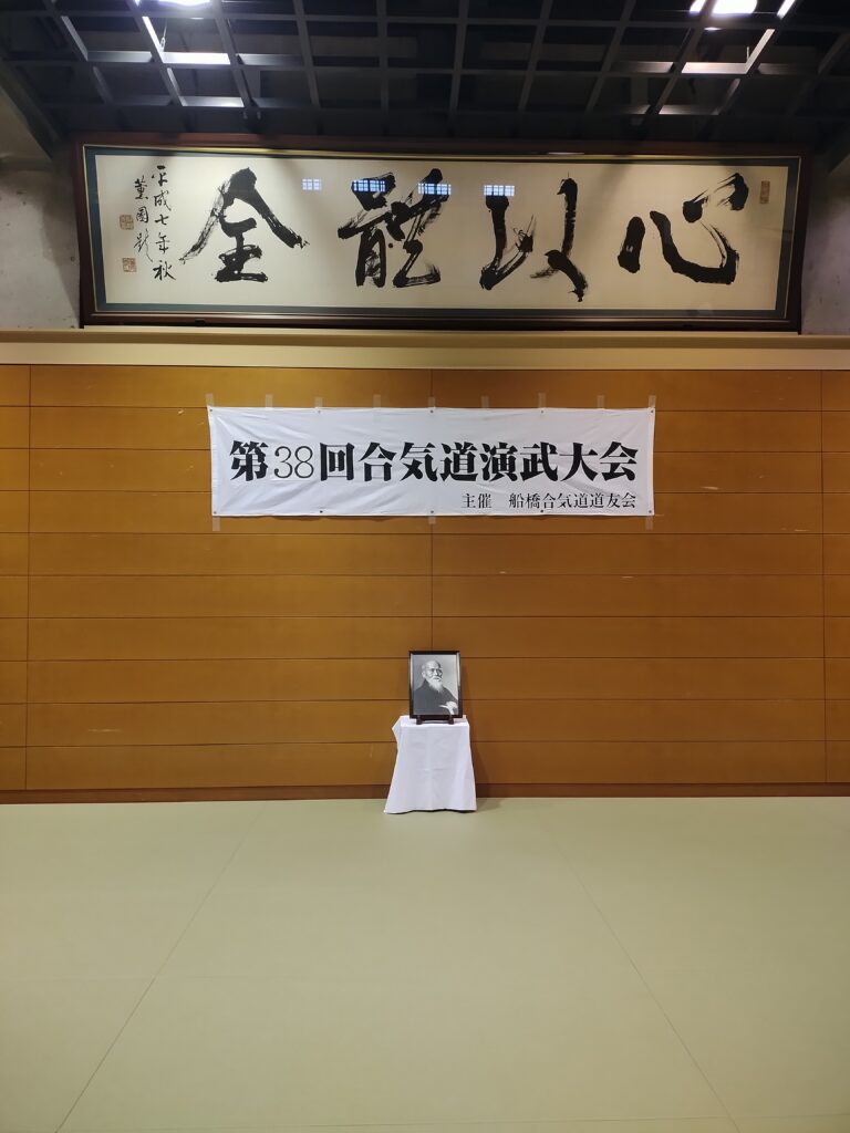 本日の大会には、千葉県合気道連盟より寺本理事長のご出席をいただいております。また遠くは岡山県倉敷合気道会、奈良合気道西大和会、岩手県盛岡道場、海外からもご出席いただき総勢80名強の大会になっております。